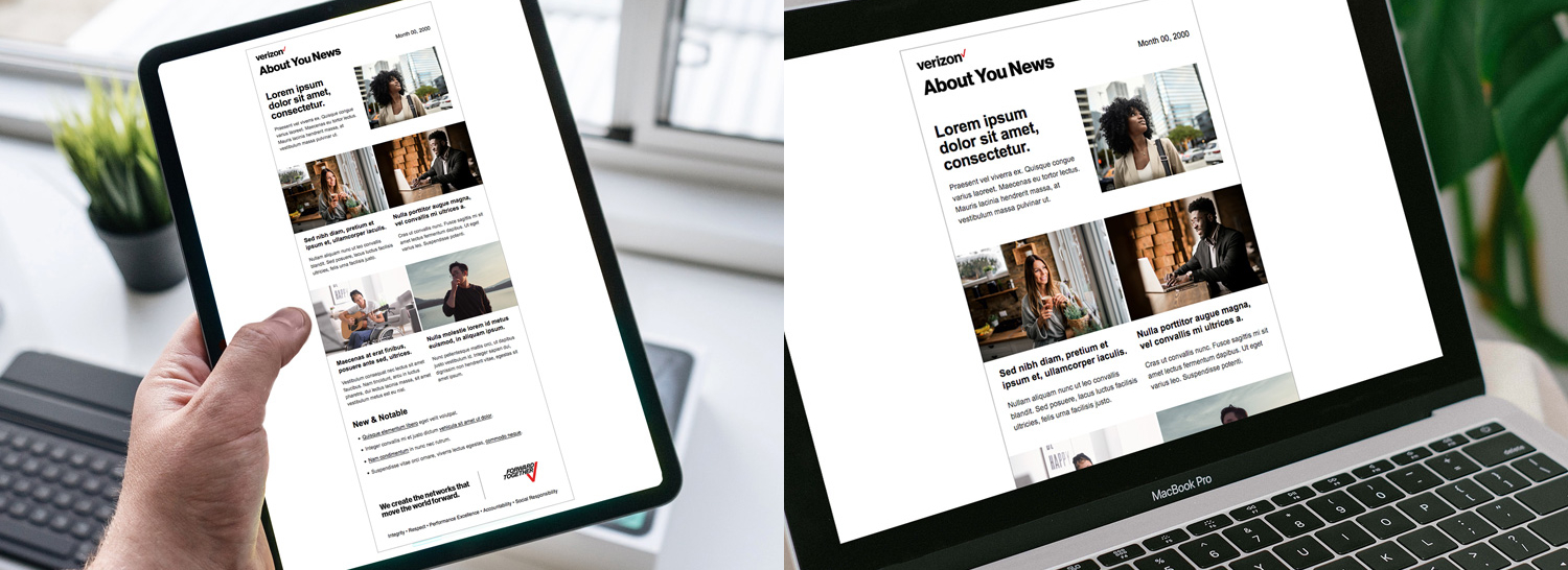 About You News is a weekly email publication curated and created by Human Resources Communications. The pub, as it is colloquially known, is deployed company-wide to management and associate employees of Verizon. Providing updates on benefits, company culture, employee recognition, health and wellness, ethics, and various other topics, the pub is crucial to employee outreach and engagement.